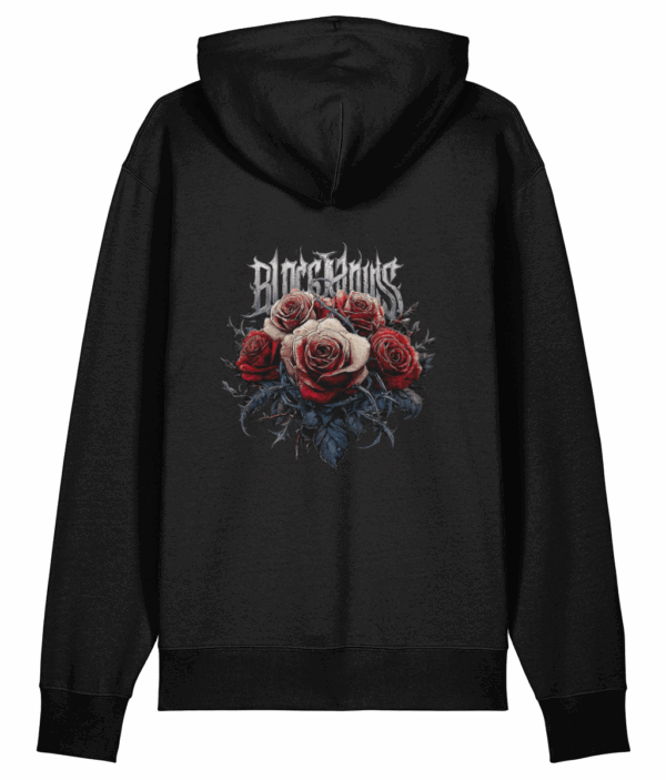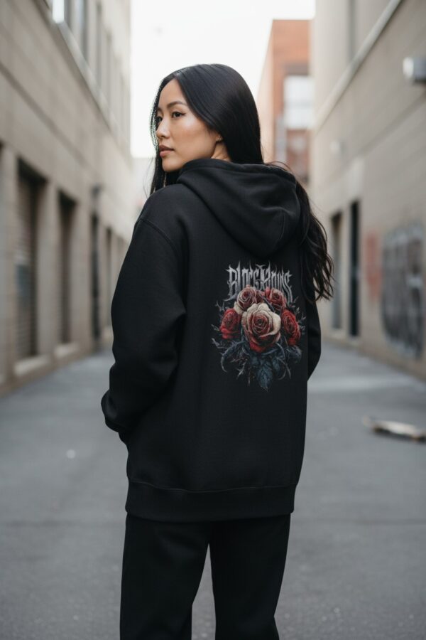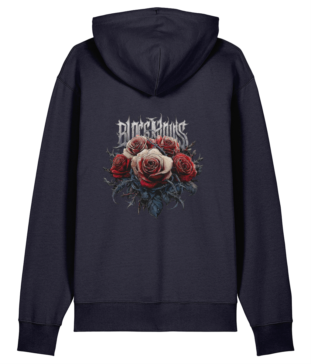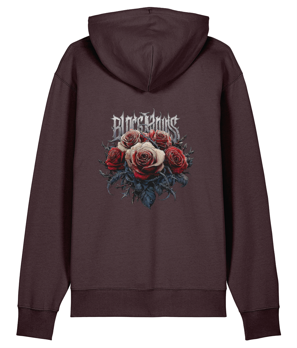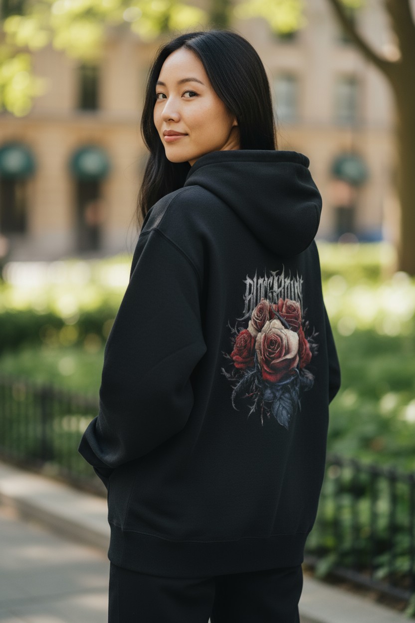 Dark romance meets raw power in the Bloodthorn Hoodie. Featuring a striking bouquet of crimson and ivory roses entangled in barbed thorns, it symbolizes beauty born through struggle. The bold gothic typography adds a fierce touch, blending passion, pain, and resilience into one unforgettable streetwear statement.