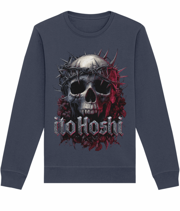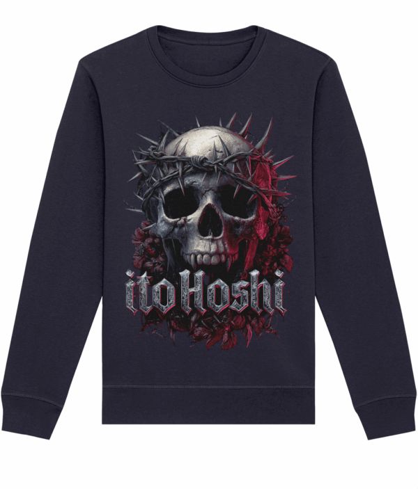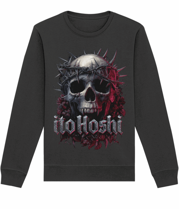 The Crown of Thorns Sweatshirt embodies defiance, sacrifice, and strength. Centered by a haunting skull wrapped in a thorned crown and framed by blood-red roses, this design captures the beauty within darkness, a symbol of pain turned into power.