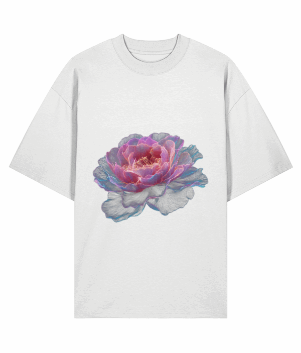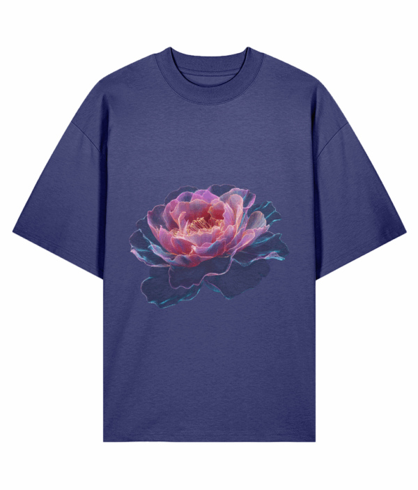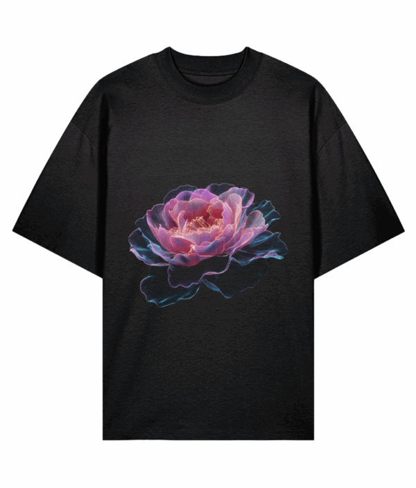 Soft, radiant, and timeless, the Ethereal Bloom Tee captures the delicate beauty of an English rose in full blossom. Rendered in luminous layers of pink, violet, and coral tones, it reflects serenity and inner strength through refined minimalism.
